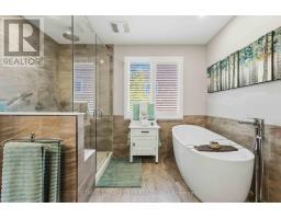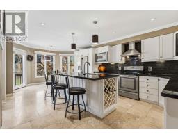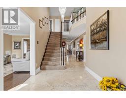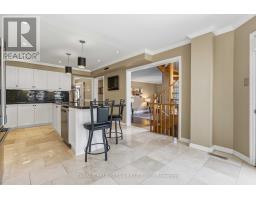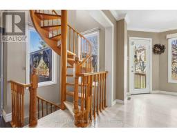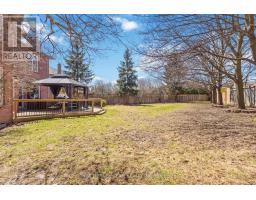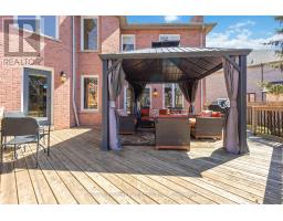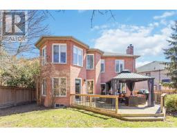 Merrick built, all brick family home set on a rare 196ft pie-shaped lot in the sought after Pringle Creek community. This spacious 4+1 bedroom home features a traditional floor plan with an elegant formal living room with crown moulding, a separate dining room with french doors and wainscotting, and a convenient main-floor library/den ideal for working from home. Hardwood flooring flows through the living, dining, and family rooms. The inviting family room offers a cozy brick woodburning fireplace, sliding glass walk-out, and a spiral staircase leading to the primary retreat & lower level. The gourmet kitchen is designed for both everyday living and entertaining, complete with a large centre island, pendant lighting, breakfast bar, touch faucet, backsplash, under-cabinet lighting, pull out cabinetry, pantry, and travertine flooring. The breakfast area features a garden door walk-out to an entertainer's deck with gazebo, gas BBQ hookup, perennial gardens, and mature trees for added privacy. A practical mudroom includes garage access and a separate side entrance (can be easily converted back to a laundry room). The double garage offers large storage shelving & cabinetry. Upstairs, you'll find two linen closets, hardwood floors and four generous bedrooms, including a luxurious primary oasis with sitting area, electric fireplace with stone surround, walk-in closet with professional organizer, and a spa-like 5-piece ensuite with stand-alone soaker tub, double quartz vanity, and glass rain shower. A renovated 3-piece bath with Italian marble flooring completes the upper level. The lower level adds even more living space with a 5th bedroom, office area with soundproof panelling, cold cellar with shelving, rough-in for a bathroom, and a large laundry/storage area awaiting your finishing touches. Ideally located just steps to public and Catholic schools, parks, shops, Whitby Civic Recreation Centre, and more. (id:61594)