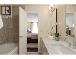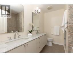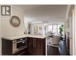 Wake up to tranquil water views in this refined penthouse,where comfort, craftsmanship, and location come together seamlessly.Overlooking the serene waters of Sixteen Mile Creek and views of Lake Ontario,this renovated residence has been thoughtfully redesigned to create a warm and inviting home with timeless finishes and a smooth flow. Inside,elegant engineered hardwood flooring runs throughout the space along with travertine marble in the foyer and kitchen.The updated kitchen is both beautiful and functional,featuring custom cabinetry with under-cabinet lighting,a new updated backsplash,and high end SS appliances.The Great Room and Dining Area boast soaring 9-ft ceilings and a cozy gas fireplace,creating an atmosphere that truly feels like home.With access to two balconies, you can step outside to enjoy uninterrupted views of Sixteen Mile Creek,an ideal setting for morning coffee or quiet evenings.Just off the living area, a versatile den offers flexibility for a home office, gym,or playroom w/ doors for privacy.This thoughtfully designed unit includes a two bedroom split floor plan.The spacious primary suite features a generous walk-in closet and a five-piece ensuite bathroom.The second bedroom also offers a walk-in closet, 4 pc ensuite bathroom, and a walkout to the balcony—perfect for unwinding before bed while enjoying peaceful views. A 2 pc powder room, laundry closet with stackable Bosch W/D & plenty of storage complete the Suite. Offering over 1,400 sq ft of living space,this penthouse includes two premium parking spaces, a locker, and access to outstanding building amenities,incl. an indoor pool, gym, hobby room, & party space—completing this exceptional lifestyle. Ideally positioned in Old Oakville, it's just steps from the Go Train and a 30-minute commute to downtown Toronto and easy access to the highway. Plus, you're just a short stroll away from Whole Foods and downtown Oakville's shops and restaurants. Move in and enjoy! (id:61594)
