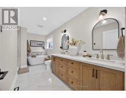 Fully Renovated Innishore Beauty Backing onto EP Land with Walk-Out Basement & In-ground Heated Saltwater Pool! Welcome to this top-to-bottom renovated all-brick 2-storey showstopper, perfectly positioned on quiet cul-de-sac on a premium with no neighbours behind. The main floor impresses with 9 ft smooth ceilings, pot lights, motorized window coverings, and wide-plank hardwood throughout. Entertain in the versatile living/dining space, or cook in your dream kitchen featuring crisp white cabinetry, quartz counters, timeless backsplash, soft-close drawers, appliance garage, and a large island that brings everyone together. Unwind in the cozy family room with a gas fireplace and private backyard views. A modern powder room and stylish laundry with herringbone tile with custom built-ins, laundry sink, and garage access add everyday convenience. Upstairs, retreat to the luxurious primary suite with a custom entertainment wall, walk-in closet, and a spa-inspired 5-piece ensuite with heated floors, dual vanity, and standalone tub. Three additional bedrooms share an updated 5-piece bath. The walk-out lower level is an entertainers dream with a spacious rec room, gas fireplace, built-ins, speakers, a games area with bar with stunning custom cabinetry, a 4-piece bath with frameless glass shower, and a 5th bedroom perfect for large families or guests. Step outside to your private backyard oasis featuring a deck with glass railings for unobstructed views, lower-level patio, and inground heated saltwater pool, all surrounded by mature trees and nature. This home is truly move-in ready and made for modern family living. (id:61594)