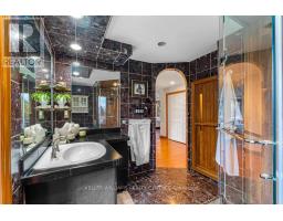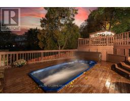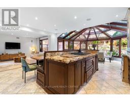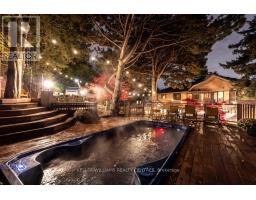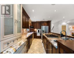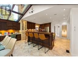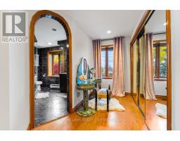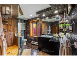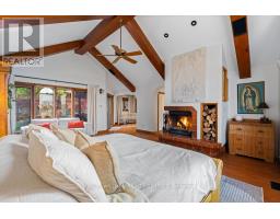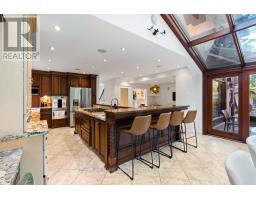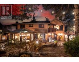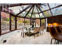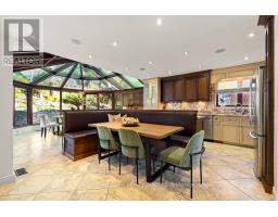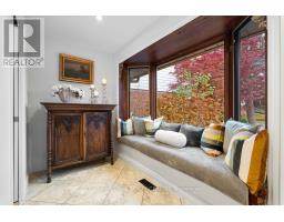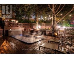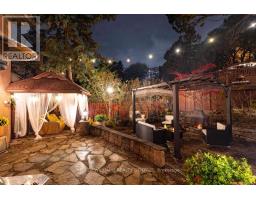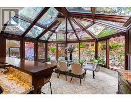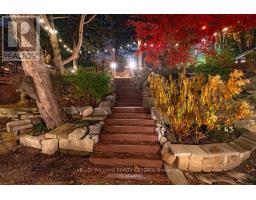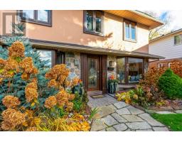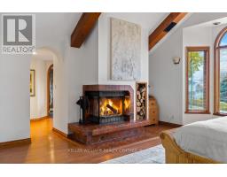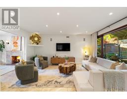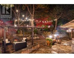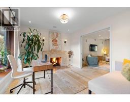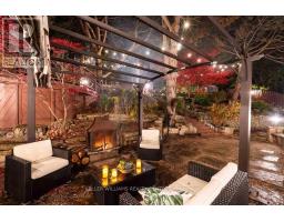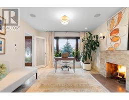 Step into your private urban oasis with this exceptional home, featuring 3 spacious bedrooms and a versatile 4th den on the 2nd floor, perfect as a nursery, office, or cozy retreat. The primary suite impresses with vaulted ceilings, a custom wood-burning fireplace, a private balcony, and a spa-inspired ensuite complete with a built-in sauna and a glass-enclosed oversized shower. Natural light floods the upper hallway through a skylight, creating a warm and inviting atmosphere. At the heart of the home, the chef's kitchen is designed for both family living and entertaining, with built-in appliances, generous stone surfaces, a prep sink, a built-in breakfast nook, and integrated indoor Sonos speakers with dedicated wall controls. Sunlight fills the adjacent dining room and sunroom, offering year-round views of the lush, meticulously curated gardens. Additional highlights include a private main floor office with its own wood-burning fireplace, a functional mudroom with built-in bench, a walk-in closet, abundant storage throughout, and a fully equipped lower-level in-law or nanny suite with its own kitchen, fireplace, living space, and 5th bedroom. Three wood-burning fireplaces throughout the home add warmth and charm to every room. The resort-style backyard is a true entertainer's dream, featuring a heated pool, cabana, two fire pits, an outdoor speaker, a Natural Gas BBQ, multiple seating and dining areas, and beautifully landscaped gardens that ensure privacy and serenity. Set on a rare pie-shaped lot spanning almost 1/3 acre, over 200 feet deep and opening to a 121 ft rear lot line, this property perfectly balances the tranquility of a private retreat with the convenience of city living, just moments from highways, Fairview Mall, the subway, parks, and top-rated schools. An extraordinary offering not to be missed, schedule your private tour today. (id:61594)