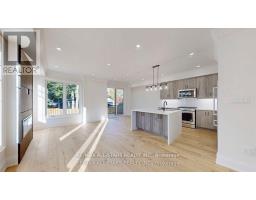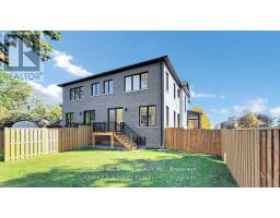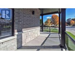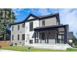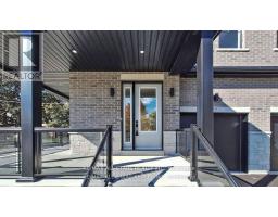Brand new and beautifully finished, this custom-built freehold semi-detached home by highly ranked Tarion builder Coral Creek Homes offers approximately 2,400 sq ft of thoughtfully designed living space, including a fully finished basement with above-grade windows, quality carpet and underpad, spacious recreation area, 3-piece bath and ample storage. The maintenance-free brick and stone exterior is complemented by a paved driveway, sodded yard and 6' pressure-treated rear privacy fence. Enjoy the wraparound front porch with tinted glass railing or entertain from the kitchen walkout to the rear deck with direct BBQ gas line. Inside, 9' smooth ceilings on the main and upper floors, 7 3/4" engineered hardwood and large-format porcelain tile create a refined feel throughout. The upgraded trim package features 7" baseboards, 3" casings, 7' doors and impressive 7" crown molding on the main floor, upper hall and primary bedroom. Oak stairs with black steel pickets and stained wood caps add architectural flair, while matte black hardware, upgraded black fixtures and LED pot lights enhance the modern aesthetic. The family room showcases a dramatic feature wall with 42" electric fireplace and TV wiring. Upstairs offers three bedrooms including a stunning primary suite with hardwood, large corner windows, walk-in closet with professional organizer and luxurious 5-piece ensuite. The second-floor laundry includes LG side-by-side washer and dryer, quartz folding counter, upper cabinetry, stainless sink and porcelain tile. The designer kitchen overlooks the family and dining areas and features a quartz waterfall island with undermount sink, subway tile backsplash, valence lighting, soft-close cabinetry and quality KitchenAid appliances. Ideally located close to schools, parks, Uxpool, the Curling Club and downtown shopping, and backed by a 7-year Tarion New Home Warranty, this home delivers style, comfort and peace of mind. (id:61594)