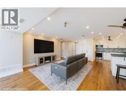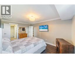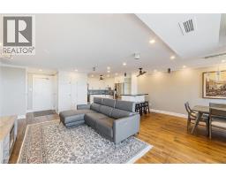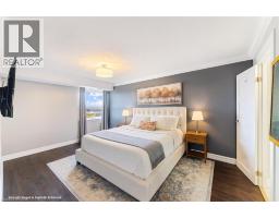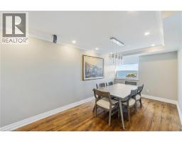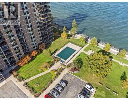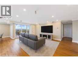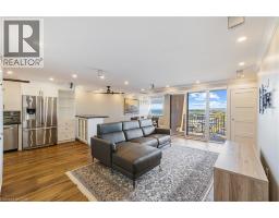 Wake up to sparkling water views and soft morning light over Lake Ontario in this spacious corner-unit condo offering 2 beds and 1.5 baths that perfectly blend comfort, style, and serenity. Inside, you'll discover engineered wide-plank hardwood floors, crown moulding, and pot lights that highlight the open-concept living and dining space. The unit has been upgraded with modern touches throughout, including refined interior doors and a cohesive, contemporary aesthetic. The bright kitchen offers granite countertops, pot drawers, a pantry, and ample storage, while hallway closets add practical convenience. Enjoy your favorite music with the integrated speaker system and take in the peaceful scenery from your spacious balcony, the perfect spot to relax and enjoy the lakeside breeze. The primary bedroom includes a walk-in closet and private 2-piece ensuite, while the main bathroom, fully updated in 2024, showcases heated floors and modern finishes. A Miele washer and dryer provide in-suite convenience. Building amenities include a heated outdoor pool, BBQ area, indoor hot tub, gym, sauna, games room, and workshop, offering the ideal blend of recreation and relaxation. Condo fees include heat, hydro, AC, water, cable TV, internet and more! Includes one owned underground parking space, with surface parking available for a second vehicle. Ideally located close to highway access yet just steps from the waterfront and scenic trails, this home offers the perfect balance of connectivity and calm in beautiful Stoney Creek. More than a condo. It's a lakeside lifestyle. Welcome home. Some images have been virtually staged and/or digitally enhanced to illustrate potential use and design. Actual property appearance may differ. (id:61594)