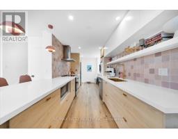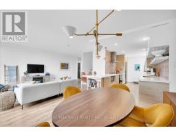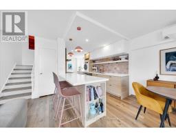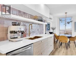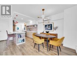 Fall head over heels in this one-of-a-kind professionally designed two-storey corner suite the moment you arrive. Rarely offered in High Park-Swansea, this three-bedroom, one-bath, two-storey condo showcases panoramic views of the Humber River and Lake Ontario from every room. Expansive floor-to-ceiling windows fill the open-concept layout with natural light and offer serene treetop views.The open living and dining areas create a backdrop for gatherings. The chef-inspired kitchen boasts white quartz countertops, a blush-pink tile backsplash, stainless steel appliances and three terracotta pendants above the island. A custom eat-in nook framed by water views sets the scene for morning coffee. Upgraded hardwood floors and designer lighting complete the aesthetic. Sliding glass doors open to an oversized private terrace with treetop and water views, creating the perfect oasis. Enjoy barbecues, alfresco dinner gatherings and beautiful sunrises and sunsets. This secluded terrace truly completes the condo experience. Discover three generous bedrooms bathed in natural light and framed by lush treetop scenery. The spa-like bathroom makes a bold statement with lush botanical wallpaper, a deep soaker tub, a sleek black shower head and matching fixtures. Additional conveniences include one exclusive underground parking spot, a private storage locker and all-inclusive maintenance fees covering cable television and high-speed internet. The building amenities include pool, gym, sauna, tennis court, security guard, private dog park, visitor parking, bicycle storage and tennis courts. Ideally located steps from High Park, Lake Shore Waterfront Trails, Grenadier Pond, local cafes, cheese boutique, and easy access to The Queensway, Lake Shore, Bloor Street West, and TTC. This designer suite offers the ultimate blend of modern style, comfort and city convenience. Unpack, move in and start living the elevated lifestyle you've been dreaming of, welcome home! (id:61594)