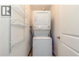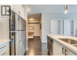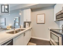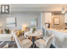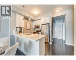 $504.57 MonthlyWelcome to this beautifully upgraded 1 bedroom + DEN condo located in a modern and sought-after Burlington building. This bright main floor unit offers approximately 709 sq. ft. of stylish living space plus a private balcony, with desirable south-facing exposure overlooking peaceful green space. Inside, you’ll find a functional open-concept layout highlighted by 10-foot ceilings and contemporary finishes throughout. The well-appointed kitchen features granite countertops, stainless steel appliances, and a convenient breakfast bar, perfect for everyday living and entertaining. The spacious living and dining area flows seamlessly to the balcony, creating a bright and welcoming space. The separate den provides a versatile area ideal for a home office or additional workspace, while the primary bedroom offers comfortable accommodation with easy access to the upgraded bathroom featuring a glass-enclosed tub and shower. In-suite laundry adds everyday convenience. Residents enjoy excellent building amenities including a fitness centre, party room, theatre room, and rooftop terrace. The unit also comes with 1 underground parking space, a storage locker, and bike storage conveniently located on the same floor. Ideally situated close to shopping, restaurants, parks, and major transit routes, this condo offers a perfect blend of comfort, convenience, and modern living in Burlington. (id:61594)
