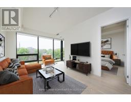 Live Above It All in Leslieville's Premier Boutique Soft Loft! Nestled in the treetops of one of Toronto's most vibrant neighborhoods, this one-of-a-kind 1-bedroom customized soft loft perfectly blends style, comfort, and functionality. Located in a meticulously maintained boutique low-rise, professionally managed by Icon Property, the building features a dedicated on-site superintendent (Mon to Fri 10:00am-6:00pm; Sat 8:00am-12:00pm) along with nightly on-site security (Mon to Sun 11:00pm-7:00am), offering residents exceptional service and added peace of mind. Modified from the builder in preconstruction, this unit features an expanded kitchen layout with additional counter space, extra cabinetry, and enhanced storage. Steps from cafés, artisanal shops, restaurants, parks, and TTC, this sun-filled south-facing home boasts floor-to-ceiling windows, fully drywalled interiors, and an extra-wide layout designed to maximize space. The custom U-shaped kitchen showcases Corian countertops, a glass tile backsplash, full-height cabinetry, breakfast bar, gas stove, and full-sized appliances. Thoughtful upgrades continue throughout, including bedroom custom primary closet, glass shower partition with soaker tub, smooth ceilings, roller shades, and 9-foot ceilings. Step out onto the private south-facing balcony overlooking the neighboring building's green roof, offering serene leafy views while maintaining privacy. Storage is generous with an oversized locker, and secure underground parking included. Situated on the quiet side of this well-managed boutique building, residents also enjoy access to a party room terrace and conference space. Ideal for first-time homebuyers, this turnkey loft offers low maintenance fees and strong rental potential, all within a 10/10 location known for its quiet tree-lined streets, nearby parks, fantastic takeout options, and unbeatable urban convenience. This property represents a smart investment in one of Toronto's most sought after hoods. (id:61594)