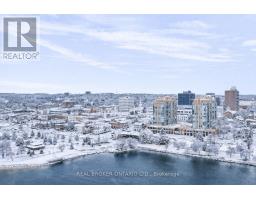 UTILITIES INCLUDED IN CONDO FEES! This beautifully updated 1-bed + den, 1-bath condo offers south-west exposure with fantastic views of Kempenfelt Bay, the marina, and downtown Barrie. Large windows flood the space with natural light, showcasing stunning sunsets and the city lights at night. The 775-square-foot unit features hardwood floors throughout the living room and den, with vinyl flooring in the spacious bedroom. A newly renovated bathroom elevates the space with a modern tub, toilet, vanity, and gorgeous tile work that seamlessly flows into the foyer. The den is perfect for a home office or hobby space, and the unit also offers convenient in-suite laundry. Included with the unit are one underground parking space and a storage locker. Building amenities feature an indoor pool, sauna, hot tub, gym, and a party/games room with monthly events. Condo fees cover heat/central air, hydro, water, building insurance, parking, and common elements, with on-site management, a superintendent, dual elevators, and visitor parking. Located just steps from waterfront trails, shopping, restaurants, and transit, this is downtown Barrie living at its best. (id:61594)