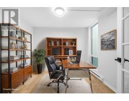 Welcome to a meticulously updated residence where significant investment and thoughtful design come together to deliver comfort, quality, and long-term value. This beautifully maintained home features a well-executed layout with premium upgrades throughout. The main living and dining area is bright and welcoming, enhanced by updated flooring and a custom ceiling finished with new drywall and professionally installed pot lighting, adding warmth and architectural depth. Large windows flood the space with natural light, creating an ideal setting for everyday living and entertaining.The kitchen has been extensively upgraded and showcases contemporary two-tone cabinetry, quartz countertops, under-cabinet lighting, and stainless steel appliances, offering both style and functionality. The primary bedroom serves as a private retreat, comfortably accommodating a king-sized bed and featuring excellent closet space along with a fully renovated ensuite bathroom. The second bedroom is generously sized and thoughtfully positioned, while the separate den provides valuable flexibility as a home office, media room, or guest space.The main bathroom has also been renovated with modern finishes, reflecting the same level of care and attention seen throughout the home. Additional highlights include full-size in-unit laundry, practical storage solutions, ground-level indoor parking, and car wash station, further enhancing daily comfort and convenience. Residents enjoy access to beautifully maintained shared amenities, including a landscaped terrace, a park with its own ponds and games area, as well as a common party and meeting room, ideal for gatherings, celebrations, or working from home outside the unit. Located close to shopping, restaurants, cultural venues, medical services, transit, future LRT access, and scenic walking paths, this home offers exceptional convenience in a desirable setting. Some photos virtually staged. (id:61594)