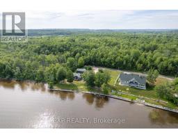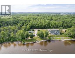 Magnificent waterfront property at the end of a cul-de-sac 25 minutes from Ottawa. This bungalow has a kitchen that faces the dining room and living-room which has a one of a kind view of the Ottawa river. Down the hallway are 2 generous sized bedrooms and a full bath. The Primary has a patio door that leads to a porch facing the river; perfect for a romantic evening. The basement has a third bedroom with a large rec room and second full bathroom. The 25x40ft detached garage is heated and is perfect for a workshop and toys. This property has over 200 feet of waterfront; one of the largest in Rockland. It also has room and slope for a possible boat launch and dock. (id:61594)