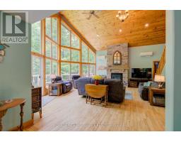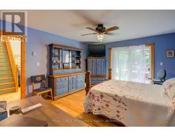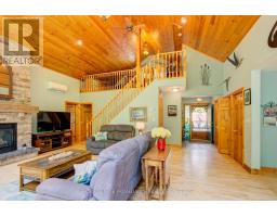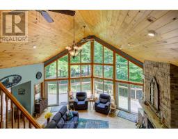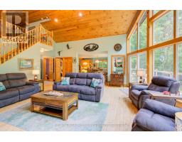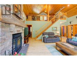Truly amazing Buck Lake waterfront property with over 440 ft of stunning waterfront and nearly 4 acres of beautifully manicured property. Extremely rare waterfront that has a small hard bottom sand beach for the little ones, yet 15-20 feet of deep waterfront off the dock and raft; no weeds! Paths and trails through the woods that lead to stone patio sitting areas, fish ponds, creek and more. Absolutely gorgeous. Built in 2003, the 1700 sq ft viceroy style elevated bungalow is perfectly placed on the property and the fully finished lower level is grade level walk out, beautiful for entertaining. The main floor is open concept with 2 bedrooms (primary bed has ensuite bath), a loft that overlooks the main floor that is a perfect flex room (could be bedroom, games room, office, etc). The lower level is built right on rock with an attractive/unique rock wall, a 650 sq ft rec room (pool table stays) with fireplace and a bedroom with ensuite bath. The property offers a gazebo type room off the east deck with a hot tub that stays and off the west deck is another gazebo that is 2 storey and allows for a games room or bunkie on top and a craft/hobby room on the lower, all with hydro. Energy efficient radiant heating and 3 built-in heat pump wall units that provide your summer's air conditioning. High quality built home with stone and cedar exterior. Newer shingles on the house and garage. Good quality windows allow for tons of natural lights and amazing views. The detached garage is 3+ car with an attached 3 bay drive shed. The front of the property is open manicured lawns that are perfect for outdoor games, entertaining and extra parking if needed. Located on the West side of Buck Lake with lots of beautiful lake to enjoy and explore. Just 35 minutes north of Kingston or 15 south of Westport via Perth Rd. Welcome to 507 Frye Lane. (id:61594)