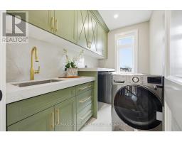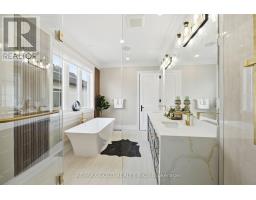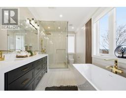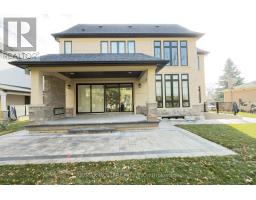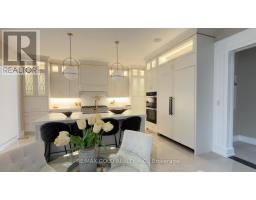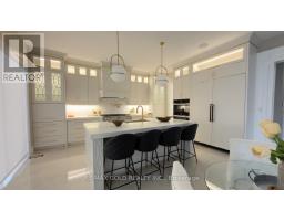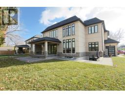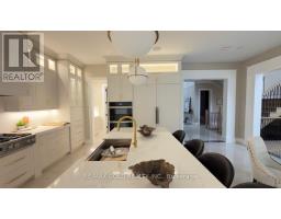 Welcome to an exceptional custom-built luxury residence, where inspired architecture, thoughtful design, and superior craftsmanship come together to create a home that is both elegant and functional. The grand foyer sets the tone, offering an impressive welcome into this truly distinguished home. Light & architectural impact, the interior features a dramatic skylight that fills the home with natural light. The show-stopping 20' family room is highlighted by a stunning floor-to-ceiling porcelain fireplace, sophisticated yet inviting atmosphere. The formal living room features 14' ceilings and expansive front-facing windows. The open-concept main level is enhanced by 10' ceilings, modern pot lighting, and floor-to-ceiling windows, allowing sunlight to pour into every corner. Elegant wainscoting and custom wall panelling throughout the foyer, living room, family room, and staircase showcase the exceptional detail and craftsmanship found throughout the home. At the heart is a chef-inspired kitchen, designed for both everyday living. It features panel-ready Miele appliances, including refrigerators & other appliances, offering a seamless, built-in aesthetic. This well-planned kitchen provides an outstanding layout, premium finishes, and a functional flow that opens to the backyard through sliding doors. Step outside to a covered rear patio, accessed from the kitchen, creating the perfect space for outdoor enjoyment. The fenced backyard ensures privacy, while the beautifully designed interlocked driveway and wrap-around hardscaping enhance curb appeal and durability. Car enthusiasts and active families will appreciate the extra-wide garage, designed to comfortably accommodate larger vehicles. A secondary rear garage door allows convenient access to the backyard-ideal for motorcycles or pets. The fully finished basement continues the luxurious living experience, with large window wells for enhanced natural light, a stylish wet bar & full bath. Extra-wide garage Doors. (id:61594)