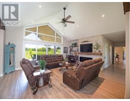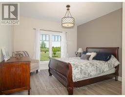 Carefully designed, custom-built bungalow offering nearly 3,000 sqft of main floor living with 4 bedrooms, 3 bathrooms, and a full, unfinished basement on beautifully landscaped 2.11 Acre lot. A 32' x 40' detached garage/workshop that's fully outfitted with an auto hoist, compressor and airlines, overhead heater, concrete floor, and 200 Amp service is an added bonus! The home's layout was purposefully planned with two distinct living areas-an east wing & a west wing. The east wing features the primary suite, complete with a large walk-in closet, luxurious five-piece ensuite, and direct access to the backyard deck and hot tub. The west wing functions as a fully self-contained in-law suite with its own separate front entrance, spacious living room with kitchenette, bedroom with sliding doors to the backyard, laundry closet, and a three-piece bathroom with a zero-entry walk-in shower. At the heart of the home is an expansive open concept kitchen, dining, and living area that ties everything together. The Oakridge Premium kitchen is outfitted with granite counters and opens onto a bright dining room with sweeping backyard views. The living room is anchored by a stone fireplace and features vaulted ceilings with dramatic two-storey, floor-to-ceiling windows that lead out to a stunning covered pavilion designed to match the interior vaulted ceiling profile. An attached double garage leads into a large, bright laundry and mudroom with plenty of storage. Accessibility was top of mind in the home's design, with wide 36" doorways and 48" hallways throughout. Energy efficiency is another standout feature, with triple-pane windows, double-pane sliding doors, and on-demand hot water. The outdoor space is just as impressive, with extra parking, a landscaped sandy firepit area overlooking a serene pond with windmill aeration, and the kind of quiet country setting that's hard to find yet close to everything - offering central access to all points in Niagara, Haldimand, and Hamilt (id:61594)