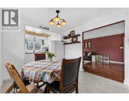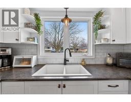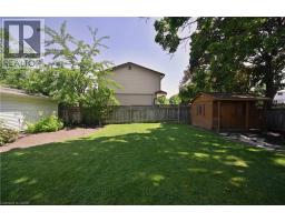 Welcome to this beautifully maintained 4+1 bedroom, 2 full bath 3-level backsplit located in a highly desirable West Mountain neighbourhood. The renovated kitchen and dining area features heated floors and a walkout to a private patio with awning - ideal for indoor-outdoor living. The formal living room showcases hardwood flooring and a bright bay window with built-in seating. Upstairs includes four generously sized bedrooms and a stylishly updated 4-piece bath. The fully finished lower level offers a spacious rec room with built-ins, an additional bedroom/office, updated 3-piece bath, and a refreshed laundry/utility area. Step outside to a large backyard featuring mature trees, beautifully maintained gardens, and a charming decorative garden shed. Updates include a metal roof and new eavestroughs (2017), Bath Fitter tub (2018), and a full kitchen/dining renovation with heated floors, basement flooring, and newly paved driveway (2020), new mechanicals (furnace, A/C, rented water heater), a Whirlpool range, and stacked dryer (2021), renovated bath/laundry 2022, Whirlpool washer (2025) and dishwasher (November 2024). With a convenient side entrance from the dining area, this home offers excellent in-law suite potential. Conveniently located close to schools, parks, recreation, shopping, the Linc, and major highways. (id:61594)