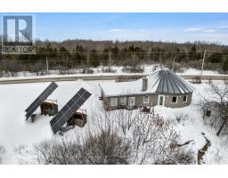 Paddler's Paradise! Modern roundhouse living on 7.3 acres with creek and lake water frontage, this is your sustainable escape from the city. Built in 2017 with energy-efficient ICF construction, this architecturally striking home blends contemporary design with intentional, low-impact living. Radiant in-floor heating (boiler system), solar panels, LED exterior lighting, and exceptionally low utility costs make this a smart choice for those who value comfort and sustainability. Inside, the open concept kitchen, living, and dining space is bright and welcoming beneath the sweeping circular design. Two bedrooms and a beautifully finished bathroom with a pebble stone bath/shower and dramatic dome skylight bring spa-like warmth to the heart of the home. Step outside to 7.3 private acres where Otter Creek winds through the property to Otter Lake. Natural lake frontage creates a haven for wildlife and a true connection to nature. Expect visits from deer and playful otters! Launch your canoe or kayak and explore at your own pace on this spring-fed lake with swimming, fishing, and iconic loon calls at dusk while you sit by the campfire. A boat shed, three wood sheds, fire pit, and attached single-car garage complete the package. Simple living doesn't mean remote. Just 18 minutes to Perth, 14 minutes to Smiths Falls, 1 hour to Kingston, and an easy 3.5 hour drive to Toronto. Spend a Saturday wine touring in Prince Edward County or working remotely with nature as your backdrop. Downsize. Unplug. Live intentionally. (id:61594)