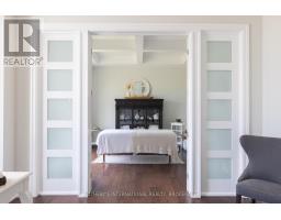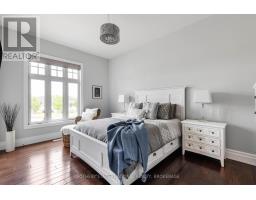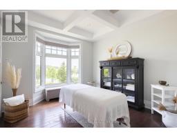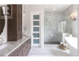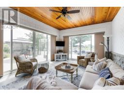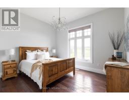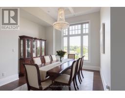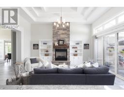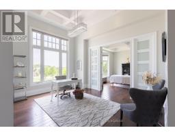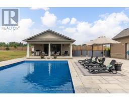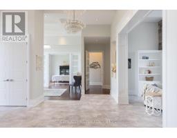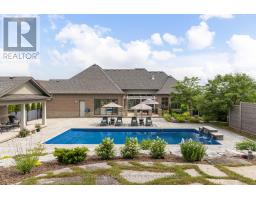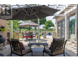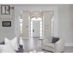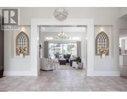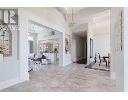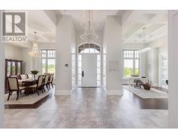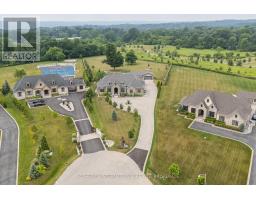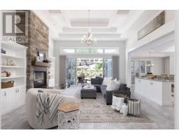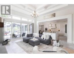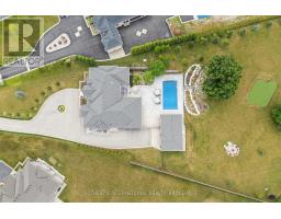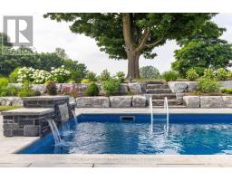 An unparalleled estate residence in the heart of Dundas' most prestigious enclave. Poised on a pristine, professionally manicured two-acre lot backing directly onto the protected conservation lands of Tews Falls, this extraordinary bungalow offers over 4,000 square feet of exquisite main floor living, meticulously crafted with the finest materials and finishes available. Every element of this home speaks to luxury and sophistication. Dramatic coffered ceilings soaring from 10 to 18 feet frame the interior with architectural distinction, while expansive principal rooms flow effortlessly under a canopy of custom millwork, oversized baseboards, detailed crown mouldings, and designer lighting. The heart of the home is the gourmet chefs kitchen, an entertainers dream complete with top-tier appliances, bespoke cabinetry, an oversized island, and a fully outfitted walk-in pantry, all opening to the magnificent great room with its sweeping views of the lush grounds beyond. Offering 4 spacious bedrooms on the main level, including an opulent primary suite. With dual walk-in closets, a spa-like ensuite, and tranquil views of the rear gardens, it is a private retreat of the highest order. An additional fifth bedroom is located in the fully finished lower level, which has been designed as a self-contained suite with its own full kitchen, bath, and living area ideal for extended family or guests. The rear yard is a resort-caliber oasis, featuring a heated in-ground pool, elegant cabana, your own putting green, mature trees and conservation views. A four-season sunroom invites year-round enjoyment of the surrounding nature, while four garage bays provide ample room for automotive enthusiasts. The lower level is finished to the same exceptional standard as the main floor, with wide-plank flooring, designer tilework, custom built-ins, and premium fixtures throughout. Recently, the property has undergone numerous high-end upgrades, further enhancing its already impeccable quality. (id:61594)