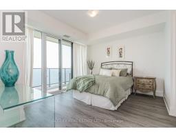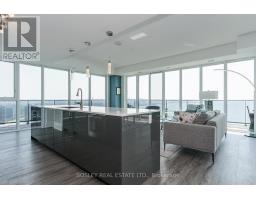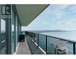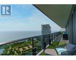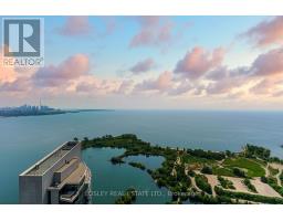 Humber Bay Shores is a coveted Toronto waterfront enclave where the tranquility of lakeside calm meets urban ease & upscale living. Steps to the Martin Goodman Trail and a vibrant dining & patio scene. Metro, Shoppers, LCBO & major banks are all walkable. With TTC at your door and a future GO station planned, access to downtown & beyond is seamless. Rising 56 storeys, Vitaon the Lake is a 3-year-old building offering refined amenities including 24/7 concierge, 5 high-speed elevators & on-site management. The 5th floor features a fully equipped fitness centre with cardio, weights, yoga studio, saunas, a stylish party room & private dining room with walkouts to the pool, sundeck & BBQ terrace. Two guest suites, ample visitor parking, underground car wash and pet wash stations provide daily convenience. THE VIEW!! You'll be swept away upon entering this expansive 1,544 sq ft south/east corner suite, where unobstructed & breathtaking views stretch over Lake Ontario, the Mimico Yacht Club, and the glittering Toronto skyline & iconic CN Tower. Floor-to-ceiling windows bathe the interiors in natural light, while a tiled wraparound corner balcony extending the full length of the suite on both ends, offers magnificent sunrise-to-sunset vistas. The foyer with recessed ceiling, double closets, guest powder room & walk-in pantry, opens to a chefs kitchen with quartz backsplash, custom 11-foot quartz island & premium Thermador & Liebherr appliances. The open-concept living, dining and den features 9-foot smooth ceilings, wide-plank luxury floors and custom 7-inch baseboards throughout. The split-bedroom layout includes two elegant 4-piece ensuites with quartz counters & porcelain tile. The primary bedroom offers dual walk-in closets & south-facing balcony access; second bedroom features a walk-in closet & east-facing balcony access. Laundry room with stacked appliances, chest freezer, sink, cabinetry & closet storage. Includes 1 locker & 2 side-by-side parking spots. (id:61594)