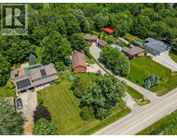 Welcome to this serene country property, ideally located just minutes from all amenities, the airport, and highway access! This beautiful all-brick raised ranch is set back from the road and nestled on a mature half-acre lot with a large, fully fenced area—perfect for kids and dogs—backing onto a peaceful forest. The main floor offers a functional layout featuring an updated kitchen with granite countertops and an island that opens to the dining area and provides access to a spacious 3-season sunroom—ideal for morning coffee or relaxing. The family room off the dining area is generously sized, perfect for hosting family and friends during the holidays. The spacious primary bedroom is highlighted by a luxurious tile shower and a granite-topped vanity. Quality hardwood floors flow throughout the bedrooms and main floor living spaces. The bright lower level with oversized windows provides additional living space, including a large rec room with a gas fireplace and a walkout to the lower-level patio with access to the backyard. A 2-piece bathroom, laundry room, and interior access to the garage complete the basement. Need space for a workshop or extra vehicles? The oversized garage runs the full depth of the home, offering plenty of versatility. Don’t hesitate to book your showing—come experience this park-like property for yourself! (id:61594)