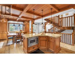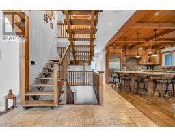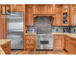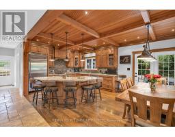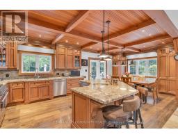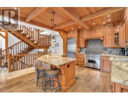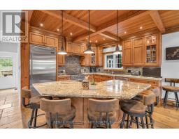 Experience the pinnacle of luxury lakefront living on the coveted south shore of Lake Simcoe. Set on 3.28 private acres, this extraordinary custom-built estate offers over 5,100 sq. ft. of total living, entertaining, and workspace, blending refined craftsmanship with resort-style waterfront living. The main residence spans more than 3,600 sq. ft., highlighted by a breathtaking great room with 20-ft ceilings, a floor-to-ceiling stone gas fireplace, and rich custom millwork. The chef-inspired kitchen is designed to impress, featuring granite countertops, wide-plank hardwood floors, exposed beams, built-in Viking appliances, a 6-burner gas range, and a large island with prep sink, flowing seamlessly into a sunlit dining area overlooking the lake. The home offers 4+1 bedrooms, including a luxurious primary retreat with a spa-inspired 5-piece ensuite featuring a soaker tub, dual rain showers, and walk-in closet. A 900 sq. ft. in-law suite with 2 bedrooms, 2 bathrooms, accessibility features, private entrance, and its own deck provides ideal accommodations for extended family or guests. Designed for entertaining and relaxation, the home also features a rec room with built-in bar and pool table, a fitness room with cedar sauna, and a two-bay garage with mudroom entry. Outside, a wraparound veranda overlooks beautifully landscaped grounds with mature trees and expansive green space. The private waterfront is set up for lakeside living with an entertaining deck, firepit, boat launch, toy storage, and outbuilding. A standout bonus is the 1,100 sq. ft. detached workshop and entertainment space, complete with golf simulator, lounge area, car hoist, bar/kitchen, and 2-pc washroom. A rare opportunity to own a private waterfront compound offering luxury, versatility, and an exceptional lifestyle -less than an hour from Toronto. (id:61594)