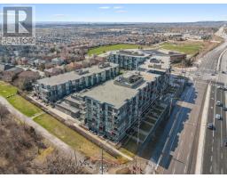 Welcome to unit 516 at 5220 Dundas St, a 2-bedroom, 2-bathroom condo in Burlington's sought-after Orchard community. This bright and spacious 831 sq ft unit features an open-concept layout with modern finishes, laminate flooring, upgraded lighting, and a sleek kitchen with stainless steel appliances, integrated fridge and dishwasher, and a large island with waterfall quartz countertops. In-suite laundry and a private balcony with views of the Niagara Escarpment round out the main living space. The primary bedroom includes a walk-in closet with custom organizers and a private ensuite bath, and the second full bathroom serves the second bedroom and guests comfortably. The building offers a full range of amenities including security, a gym, sauna, hot tub, party room, games room, visitor parking and a landscaped outdoor courtyard with BBQ area, plus trail access leading to Bronte Creek Provincial Park. Ground-floor conveniences include a hair salon, barber, convenience store, pharmacy, and dental office all within the building. The unit also comes with one underground parking spot and a storage locker. Located in a quiet residential neighbourhood, just minutes from top-rated schools, parks, shopping, and with quick access to the QEW and 407, a great fit for first-time buyers, young professionals, or anyone looking for low-maintenance living in one of Burlington's most desirable communities. (id:61594)