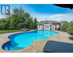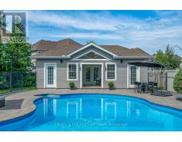 This extensively upgraded family home sits on the area's largest & most coveted lot & offers resort-style outdoor living. Elegant doors open to a tiled foyer & bright living room with hardwood floors & large windows. At the centre of the main floor, the formal dining room features California-style shutters & a modern chandelier, creating the perfect setting for gatherings. The large kitchen includes a large central island, premium stainless-steel appliances (Sub-Zero fridge, Wolf range, Miele dishwasher, GE Monogram double oven), a butler's pantry, & a walk-in pantry, complete with a built-in freezer. A sleek powder room & a functional mudroom (2016) off the garage with built-ins complete the level. Upstairs are 4 bedrooms & a loft ideal for an office or a cozy living area. With large windows, the bright primary bedroom offers a walk-in closet with built-ins & a spacious ensuite with double vanities, a soaker tub, glass walk-in shower, & a dedicated makeup area. Three additional bedrooms, each featuring walk-in closets, with one enjoying its own 4-piece ensuite. A well-appointed 5-piece bathroom & a large laundry room with cabinetry, folding counter, utility sink, & modern appliances add family-friendly convenience. The lower level (2015) boasts a versatile recreation room with recessed lighting, perfect for media, games, or fitness, double French doors to a dedicated office, & a large unfinished storage room. The showstopping backyard features a two-tier composite deck (2014) with dining & lounging zones & a sleek gazebo with an integrated bug net under the deck. The expansive, fully fenced yard offers exceptional privacy, an in-ground pool with iron rod fencing, surrounded by a custom stone pool deck, & an insulated pool house with a full recreation room, 3-piece bathroom, & a kitchenette. Located in Findlay Creek, this home offers great walkability to parks, pathways, schools, amenities, & quick access to Bank Street, Leitrim Road, & the Airport Parkway. (id:61594)