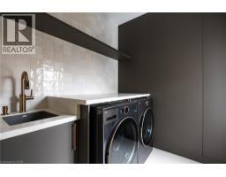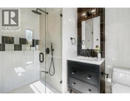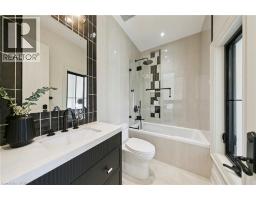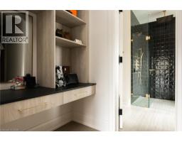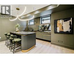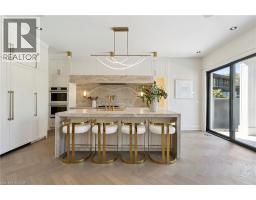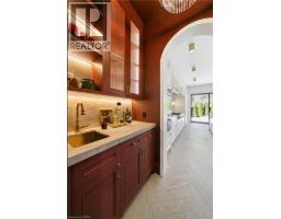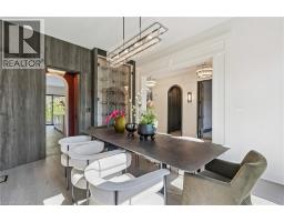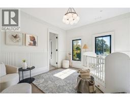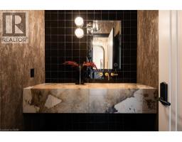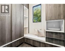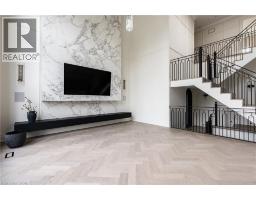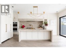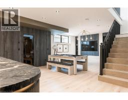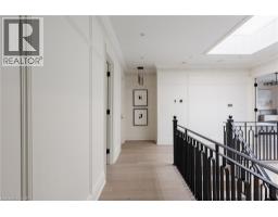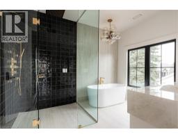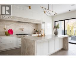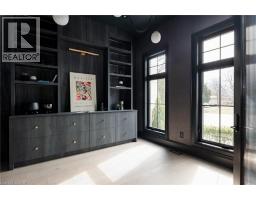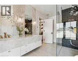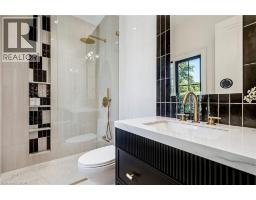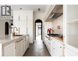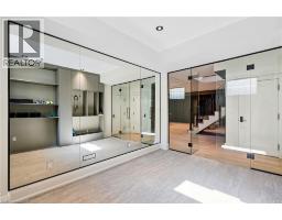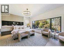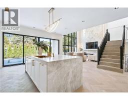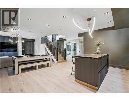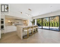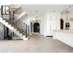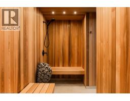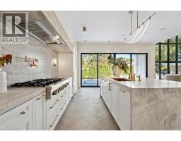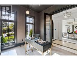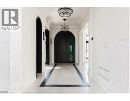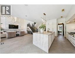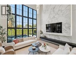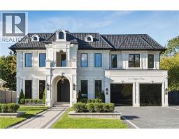 Stunning home upgraded and finished to the highest level, with French Chateau–inspired curb appeal and landscaped grounds. Luxurious finishes and attention to detail throughout. Big, bright windows, custom cabinetry, wall paneling and mouldings, curated stone and tile selections, hardwood herringbone flooring, integrated vents, and a skylight over the central staircase. Interior design by Mia Coroza. Landscaping by Kanawi Landscaping, with top trades from across the GTA. Mirage engineered oak flooring in herringbone. Red oak stairs with wrought iron railings by Deluxe Stairs. A beautifully appointed kitchen features leathered Taj Mahal natural stone quartzite countertops and island. Walk through the servery with walk-in pantry to the dining room with a built-in wine rack. The two-storey great room offers massive windows, a matte porcelain fireplace surround, and a custom ethanol fireplace. A stylish office includes French door entry, built-in wall unit, and sconces. All four bedrooms feature private ensuites. The primary suite includes a fireplace, walk-in closet with custom organizers, and an ensuite with heated floors, designer plumbing fixtures, stand-alone tub, and dual sinks. A laundry room is equipped with LG front-load washer and dryer. Each additional bedroom offers its own design, with closets featuring sensor lighting. Nine-foot ceilings and large window wells enhance the lower level. A bar area features leathered Titanium Gold natural stone quartzite countertops. The home theatre is positioned beneath the garage. Additional spaces include a home gym with custom mats, fifth bedroom, three-piece bath with curbless shower, and rec room. White cedar sauna completes the level. Walk out from the kitchen to a covered porch overlooking grounds inspired by a European garden, with fountains finished in exterior porcelain, landscape lighting, and a cabana with water and gas roughed-in. Aluminum composite fencing and a walk-up from the basement complete this setting. (id:61594)