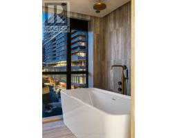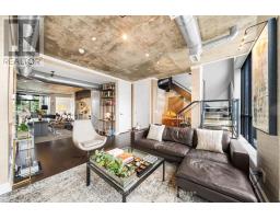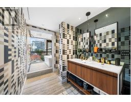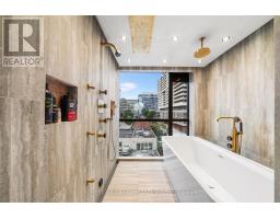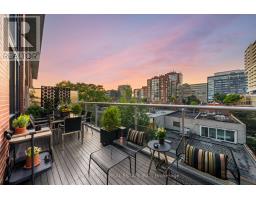 Your King West dreams are made of this. Welcome to this bespoke two-storey penthouse,custom-designed and newly rebuilt from top to bottom. This designer's own residence offers over2100 square feet of sophisticated interior and exterior loft-style living space in the heart ofToronto's vibrant King West neighbourhood. Located in a discreet 6-storey boutique buildingwith only two units per floor on a quiet, tree-lined street, this extraordinary penthouseseamlessly blends industrial loft charm with luxuriously refined designer finishes. Not justone, but three private north and south-facing landscaped terraces totalling 610 square feet ofsophisticated outdoor living space are perfect for entertaining or enjoying quiet momentsoverlooking the city skyline. The south-facing living room features exposed concrete ceilingsand ductwork juxtaposed with custom Brenlo mouldings and walks out to a terrace with anunobstructed south view over treetops. The kitchen features brand new Miele appliances, whilethe adjacent dining room comfortably seats 8 guests. The family room steps out onto a gorgeousnorthwest-facing terrace with a BBQ gas line, dining area, and Veradek planters with integratedlighting. Walk up to the extraordinary second-floor retreat, a true lifestyle experience.Featuring unobstructed north and south-facing windows, custom white oak millwork in the primarybedroom, and a 5-star ensuite with a steam room, spa shower, freestanding tub, and customgold-plated fixtures. The crown jewel is the remarkable south-facing rooftop terrace, perfectfor summer entertaining and fully landscaped with Veradek and corten steel backlit planters, a6-zone custom irrigation system and large-format porcelain tiles. Ideally located within easywalking distance to the best of King Wests world class amenities, including restaurants, bars,The Well, Billy Bishop Airport, and the Stackt Market, this penthouse offers a refinedlifestyle in the heart of the city. (id:61594)