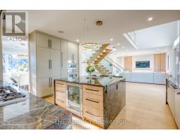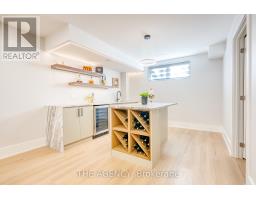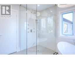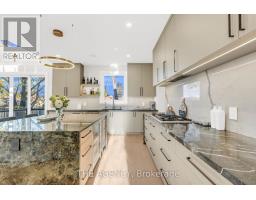 519 Third Line - A Masterpiece of Intelligent Luxury. Step into a home where cottage-inspired calm meets cutting-edge technology. Framed by clean stucco and automated lighting, the 17.5-ft foyer features rich faux wood beams that immediately set a tone of sophisticated tranquility. With a Main-Level Bedroom with separate entrance, the main floor is an entertainer's dream, featuring engineered white oak floors and a breathtaking Venetian plaster feature wall. The chef's kitchen is the showstopper, anchored by a rare Lemurian Blue granite island imported from Madagascar, surrounded by top-tier Dacor and Thermador appliances. The upper level is designed for ultimate comfort, featuring THREE primary-sized bedroom suites. Each of these three bedrooms includes its own private walk-in closet and a 5-star ensuite bathroom with heated floors and curbless showers. The main primary retreat offers a floating double vanity, backlit mirrors, and smart toilet. Tech lovers will appreciate the comprehensive Smart Home system controlled by built-in iPads, managing audio, lighting, and security. The experience continues in the basement with 8-ft ceilings, oversized windows, and a wet bar finished in leathered quartzite. Complete with a commercial-grade Lennox HVAC and automated irrigation, this home offers elevated, worry-free living. (id:61594)
