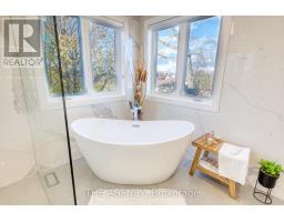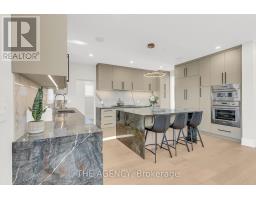 519 Third Line feels like a quiet masterpiece in motion. Framed by clean stucco lines and an intelligent outdoor lighting system that responds to time and ambience-you're immediately greeted by a sense of thoughtful sophistication. The grounds are always pristine, maintained by a fully automated lawn sprinkler system that mirrors the low-maintenance luxury found inside. Step through the main entrance that is designed to keep your family and kitchen areas truly private. The 17.5 ft foyer ceiling with rich faux wood beams gives this home a cottage-inspired calm, instantly setting the tone for the rest of the home. The engineered white oak floors flow into the family room, where custom-built solid wood panels frame a breathtaking feature wall hand-finished in authentic Italian Venetian paint-a rare touch of European elegance. The chef's kitchen is a showstopper, anchored by a stunning Lemurian Blue granite island, exclusively from Madagascar - iridescent, surrounded by Dacor and Thermador appliances, under-cabinet lighting, and toe-kick vacuum. Whether it's the main floor bedroom or the formal dining under chandelier lighting, the layout is both functional and expressive. Control the entire home from either of the two built-in iPads-one on the main, one on the upper level-including audio zones, security, and lighting. Upstairs, 3 primary sized bedrooms offer 5-star resort-style heated floor bathrooms with curb less showers, accessed through walk-in closet. The primary bath boasts a floating double vanity, backlit 72" mirror, smart toilet with heated seat, and magazine-worthy finishes. In the basement, you'll find 8-ft ceilings, oversized windows, a full rec room, and an elegant wet bar with leathered quartzite, wine rack, and beverage fridge-perfect for entertaining. The home is backed by a full water softener system, security cameras, tankless hot water, and commercial-grade Lennox HVAC. This home blends smart comfort, luxury finishings, and elevated everyday living. (id:61594)