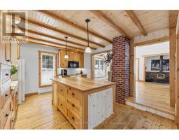 This charming warm and inviting home, thoughtfully renovated in 2014. Sitting on just under one acre of land, this property is perfect for anyone looking to escape the city and enjoy peaceful country living. Step inside and fall in love with the spacious open-concept living and dining area, highlighted by beautiful cathedral ceilings and exposed ceiling beams that bring warmth and character. This inviting space is filled with natural light thanks to Large windows and two French doors leading out to the backyard.The country-style kitchen features a large wood butcher-block island and a beautiful farmhouse sink, creating the perfect blend of charm, function, and style - ideal for cooking, entertaining, and everyday living.The main level also includes a bedroom, powder room and a laundry room for added convenience, while the second floor offers two additional bedrooms and full bathroom giving everyone space and privacy. The home also features two wood-burning stoves for cozy, efficient heat during the colder months. Unfinished Full basement gives plenty of space for storage or potential family room/ play room. If you're searching for charm, comfort, and the tranquility of the countryside, this property truly has it all. (id:61594)