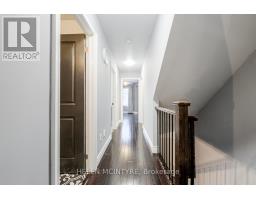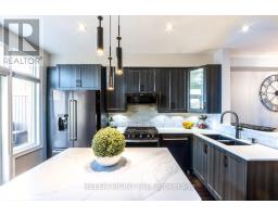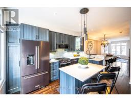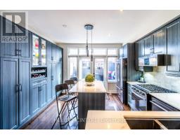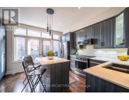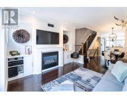 Welcome to this exceptional executive freehold townhome by Dunpar Homes, perfectly positioned in the heart of Mimico, just minutes to the QEW, Gardiner, 427 and Mimico GO.The classic stone and brick exterior leads into an exquisitely tiled foyer and a bright, open-concept main level featuring 9-foot ceilings, hardwood floors, crown moulding and modern pot lighting throughout. Large windows fill the space with natural light. The living area centres around a gas fireplace with custom built-ins and integrated surround sound, ideal for everyday living and entertaining.The upgraded designer kitchen is the heart of the home, featuring a spacious centre island and breakfast bar seating with quartz countertops, extended cabinetry, stainless steel appliances, under-cabinet lighting and built-in wine storage. A walkout from the kitchen leads to a large sunny south-facing deck with gas BBQ hookup and retractable awning, perfect for seamless indoor-outdoor living.The second level features two spacious bedrooms, a beautifully appointed 4-piece bathroom and a separate laundry room, both finished in striking high-end tile.The entire third floor is dedicated to the primary retreat, complete with a private balcony, walk-in closet with custom organizers and a spa-inspired ensuite featuring double sinks, soaker tub and glass shower.The ground level offers a versatile flex space ideal as a bedroom or office, a 2-piece bathroom and direct access to the oversized tandem garage with parking for two vehicles. The home is also equipped with central vacuum throughout for added convenience.Visitor parking is located directly across the street, adjacent to the park, offering exceptional convenience for guests. Surrounded by parks, schools, shops and community amenities, this home delivers the perfect balance of comfort, design and location.A rare opportunity in one of Mimico's most desirable enclaves. (id:61594)