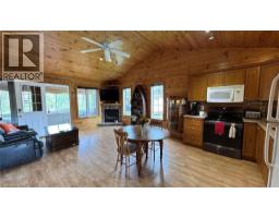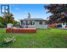 Located in the popular Lakes of Wasaga resort community, this charming year-round home offers 856 square feet of living space, including a bright two-season sunroom. The community provides a resort lifestyle with access to tennis courts, mini golf, pools, and children’s play areas. Inside, the home features two bedrooms and a three-piece bathroom with a newly updated sink backsplash. The spare room includes a built-in Murphy bed and desk, providing a flexible option for guests or a home office. The open-concept living room, dining room, and kitchen showcase cathedral pine ceilings and walls, creating a warm, inviting atmosphere. Convenience is enhanced with a stacked washer and dryer. Additional highlights include an in-ground irrigation system, generous-sized shed, and freshly stained front and back decks as well as the sunroom floor. A new AC unit was installed in May 2025. The backyard features a fire pit, perfect for relaxing evenings. The home also offers a four-foot crawl space with ample storage, housing the furnace and hot water heater. A paved driveway provides parking for three vehicles. From here, it’s just a short walk along two dedicated paths to New Wasaga Beach. Monthly fee of $772.01 (on leased land) includes property taxes, lease fee, maintenance. (id:61594)