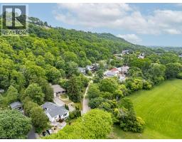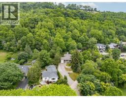 Nestled on a quiet dead-end street in one of Dundas' most prestigious and desirable neighborhoods surrounded by million-dollar homes, this exceptional property offers privacy, space, and natural beauty in a truly unique setting. Surrounded by mature trees and perched above the picturesque Dundas Driving Park, this home enjoys spectacular escarpment views and a tranquil backdrop that feels a world away, yet it’s just a short stroll to the vibrant shops, cafes, and amenities of downtown Dundas. This spacious 4-level backsplit is thoughtfully designed for comfortable family living and effortless entertaining! A welcoming entry foyer opens into a bright eat-in kitchen with newer appliances and ample cabinetry. The open-concept living/dining area is filled with natural light, featuring an oversized front-facing picture window and sliding patio doors that lead to a two-tiered deck, ideal for summer BBQs and entertaining. Hardwood flooring spans the main and upper levels, with additional hardwood under the main level carpeting. Upstairs, you’ll find three generously sized bedrooms and a five-piece main bath. The lower-level family room includes a cozy gas fireplace and a fourth bedroom perfect for the growing family, guests or home office! Just a few steps down, you'll find a modern three-piece bath with heated floors, laundry, cold room, and ample storage. Additional highlights include a single-car garage with EV charger-ready electrical panel, a rear yard garden shed for seasonal storage and wiring already in place for a hot tub. This is more than a home, it’s a lifestyle opportunity in one of Dundas’ most coveted locations. Don’t miss your chance to own this serene retreat in a truly outstanding setting and walking distance to Bruce Trail. Schedule your private showing today! (id:61594)
