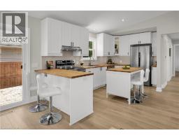 BEAUTIFULLY RENOVATED TOP-TO-BOTTOM…This fully finished 2+2 bedroom, 2 bath bungalow w/IN-LAW POTENTIAL at 52 Valencourt Drive in Welland is nestled on a sunny corner lot, where modern style meets thoughtful functionality. Set on a quiet street, this property boasts eye-catching curb appeal w/NEW siding, windows, porch & fully fenced yard, while a new walkway leads to a welcoming, decorative front door. Step inside to discover a light-filled, OPEN CONCEPT main level enhanced by VAULTED CEILINGS, luxury vinyl plank flooring, fresh paint & trim, and shiplap FEATURE WALL w/built-in electric fireplace. Front entry closet accented by barn door, setting the tone for the stylish touches throughout. The renovated KITCHEN features butcher block countertops, a breakfast peninsula w/extra storage, under-cabinet & in-cabinet lighting, S/S appliances, tile backsplash & moveable island. Patio doors open to a BRAND NEW deck & oversized CONCRETE PATIO, perfect for entertaining or relaxing outdoors. Down the hall, a versatile flex space awaits, perfect for a dining room, office, or extra bedroom to suit your lifestyle. The primary bedroom includes double French doors opening to his-and-hers closets with built-in lighting. A second main floor bedroom & NEW 4-pc bath w/deep soaker tub and stone-top vanity complete the level. With two SEPARATE ENTRANCES to the basement (one from the side door & one from garage) this home is ideal for multi-generational living or rental potential. The LOWER LEVEL features two spacious bedrooms w/egress windows, 4-pc bath, laundry closet & kitchenette w/open living area. Additional UPGRADES include: floors, doors, fixtures, kitchen, bathrooms, all-new ductwork, updated electrical with ESA certificate, new plumbing, tankless water heater, York furnace, AND garage has been newly & fully insulated. A move-in-ready opportunity with exceptional finishings and flexible living potential. (id:61594)