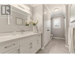 Built by Branthaven Homes, one of the region's most respected builders this fully detached house is situated on a prominent corner lot in the desirable Orchard with a picturesque, direct view of the neighborhood park right across the street-perfect for families who value green space and sense of community. The home welcomes you with an inviting front porch, an interlock walkway and stylish front door. Inside, the practical layout begins with spacious front foyer, leading to a combined living and dining rooms featuring classic hardwood flooring and bright windows, a wonderful place for family gatherings. As you move to the back of the home, the space opens up into a stunning family room with soaring vaulted ceilings, cozy gas fireplace, and a stacked double window that floods the room with natural light. The adjacent updated eat-in kitchen offers elegant quartz countertops, modern backsplash and premium s/s appliances. The main floor is completed with powder room, laundry room and a functional access to the two-car garage. Upstairs, the spacious primary suite serves as a private sanctuary with its own 4-piece ensuite. Two additional well-proportioned bedrooms share a tastefully updated 4-piece main bathroom, ensuring plenty of space for family or guests. Fully finished basement expands your living space significantly, offering a massive recreation room with electric fireplace, extra bedroom, cold room, and abundant storage. While the home retains its original charm, it has been maintained with exceptional pride of ownership. Key upgrades that provide peace of mind include roof shingles (2015) and high-efficiency furnace installed in 2020. Other premium finishes include California shutters, Hunter Douglas window sheers, crown moldings, updated light fixtures and pot lights. The backyard is designed for relaxation without the work, featuring high-end, maintenance free TREX decking and sprinkler system. Minutes away from top-tier schools, shopping, and hwy access. (id:61594)