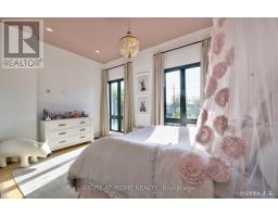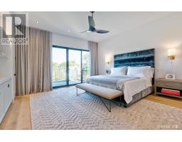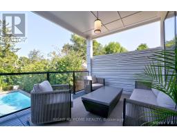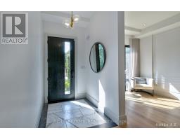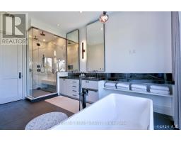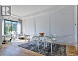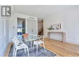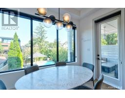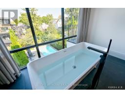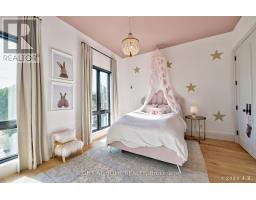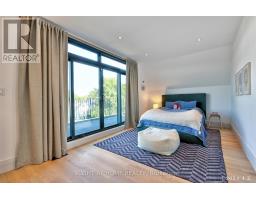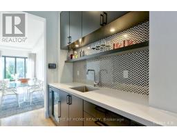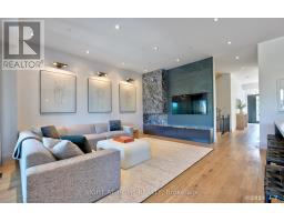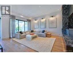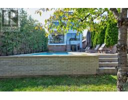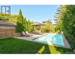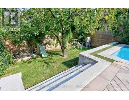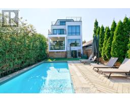 Welcome to this expertly designed 3-storey custom home, just steps from Cedarvale Park, Leo Baeck, and the LRT. Offering over 5,000 sq. ft. of refined living space, this residence features 5 bedrooms, a saltwater pool, driveway and porch snowmelt, radiant heated floors, Inline fiberglass windows, and extensive custom millwork, making it a home you will never want to leave. The resort-style rear yard was thoughtfully crafted, beginning with a large covered deck framed by glass railings and overlooking the ultra-deep backyard. Below, artificial turf flows seamlessly into the limestone surround of the foam-padded saltwater pool steps and a spacious herringbone stone lounge area, canopied by mature evergreens for privacy. A bricked retaining wall with integrated steps leads to an additional green space, ideal for a future sports court or recreation zone. Inside, there are 10-ft ceilings on the main and second levels and custom millwork throughout. The chefs kitchen is equipped with matching Jennair appliances, a built-in espresso machine, a large quartz waterfall island with abundant seating and prep space, a custom servery and bar with a second sink and beverage center, and floor-to-ceiling pantry storage. The grande primary suite features a custom TV built-in, an enormous walk-in closet with vanity/desk, and a marble-accented ensuite featuring a volcanic stone soaker tub, 12.5-ft double vanity, heated floors, private water closet, and oversized shower with dual rainheads and floating bench. Expansive windows frame serene views of the rear yard, with its terraced exterior and wrought iron railings extending from the second and third floors.A striking white oak staircase, accented with custom wrought iron railings, waterfalled steps, angled risers, and exposed stringers that reveal the natural wood edge of each tread.The finished lower level, warmed by radiant heat, includes a spacious rec room, home gym, and abundant natural light courtesy of the rear basement walkout. (id:61594)