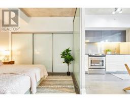Welcome to The Carlaw - an impeccably designed condo-loft that offers a bright, efficient footprint and the perfect entry point into Leslieville. This suite features 9-foot exposed concrete ceilings, floor-to-ceiling windows, and engineered hardwood throughout an open-concept layout optimized for modern living. The sleek kitchen has integrated appliances, quartz countertops, and under-cabinet lighting, while practical details like a proper entry hall closet and a separate laundry room with extra storage enhance the home's daily functionality. Step outside to your private, covered balcony - equipped with a Gas BBQ hookup-offering year-round usability and a quiet escape. Residents enjoy premium amenities including a 24-hour concierge, a fully equipped gym, and a rooftop terrace with breathtaking city skyline sunsets. With Piano Piano and Crow's Theatre at your doorstep, and the best shops and cafes of Riverside and Leslieville are just a short stroll away, this location offers a completely walkable lifestyle in one of Toronto's most coveted pockets. This property is priced for immediate action, this suite is the Leslieville entry point you've been waiting for! Any offers will be reviewed on Wednesday, March 4th. (id:61594)