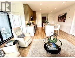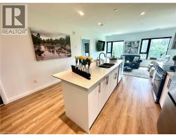 $483.58 MonthlyWelcome to The Flats at Rainbow Lake, Unit #401, a highly sought after corner unit with incredible views of mature pine trees/protected land. Country/city urban living vibe. You'll enjoy extra sunlight, added privacy, and a quiet location within the building. Smart split-bedroom layout, placing the bedrooms on opposite sides of unit for maximum privacy-perfect for guests, roommates or a dedicated home office. Thinking of downsizing? PERFECT FOR SENIOR LIVING...active community activities. Tired of paying rent? This bedroom layout is perfect opportunity for CO-OWNERSHIP with a friend, relative, parent. The bright, open-concept kitchen area flows effortlessly into the living room/dining room area, sliding doors out to covered balcony. It's the perfect place to relax and unwind while enjoying breathtaking sunsets. UPGRADES INCLUDE: quartz countertops, kitchen long island seats 4, pot lights and dimmers switches throughout, under cabinet lighting, all closets and storage by Closets by Design, custom sliding door blinds, solid wood kitchen slider drawers. The unit is close walking distance to the elevators, and fire escape stairwell is steps from the front door. Residents enjoy an impressive list of amenities, including a fully equipped gym, yoga studio, sauna, games room with pool table and darts, library with cozy study booths, dog washing station, social meeting tables and inviting lounge areas, party room (rental fee) bike storage room, incoming and outgoing mail room, parcel delivery room, organized resident social groups and events. This building is pet friendly with restrictions. Step outside and enjoy scenic walking trail around the building. The country living feel all while enjoying the convenience of quick access to Highway #401 and the convenience of Kitchener's amenities just a short drive away. Whether you're downsizing, investing, or simply looking for a peaceful, maintenance-free living with a strong sense of community, this unit checks all the boxes! (id:61594)