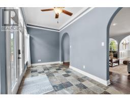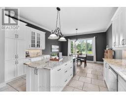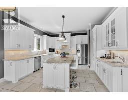 Custom-built executive bungalow in Emerald Creek Estates offering approx. 5,550 sq. ft. of finished living space, ideally situated on a private 3/4-acre lot with no rear neighbours. With 6-bedrooms and 5-bathrooms, this home is perfect for larger families or those seeking space, privacy, and a peaceful retreat surrounded by nature, all just 20 minutes from downtown Ottawa! A grand foyer welcomes you into the home, opening to a spacious family room with a dramatic floor-to-ceiling stone fireplace and graceful archways that flood the space with natural light. The large eat-in kitchen is a chefs dream, featuring granite countertops, a generously sized centre island, stainless steel appliances, gas range, and separate prep sink. Entertain in style in the stunning formal dining room with 12' ceilings, a striking arched window, and refined architectural detailing. The main level offers three spacious bedrooms, each with its own ensuite bathroom for ultimate comfort and privacy. The luxurious primary suite is privately tucked at the rear of the home and features its own gas fireplace, a spa-inspired 5-piece ensuite with double vanities, whirlpool tub, glass-enclosed shower, water closet, as well as a large walk-in closet. The expansive lower level adds incredible versatility with three additional bedrooms, a Jack & Jill bathroom, large rec room with gas fireplace and custom built-ins, multiple storage rooms, and a separate garage entrance, ideal for multi-generational living. Outdoors, enjoy a tranquil backyard oasis surrounded by mature trees, with a large deck and hot tub perfect for summer evenings. The fully insulated 3-car garage is ideal for hobbyists or car lovers, and a whole home standby generator is included. Just minutes to top-rated golf, quaint restaurants, cafés and shops in Manotick Village, the Bowesville LRT station, and the newly opened Hard Rock Hotel & Casino. Enjoy country estate living with this exceptionally built home! Some photos virtually staged. (id:61594)