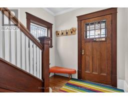 Welcome to this beautiful inviting character home, perfectly situated on a quiet, tree-lined street in the highly sought-after Teachers College neighbourhood of Peterborough. This prime location offers the rare combination of peaceful residential living with the convenience of being able to walk, bus or drive just minutes to downtown amenities. This spacious four-bedroom, three-bathroom home, plus a main floor powder room, blends timeless charm with thoughtful modern updates. The large living room features a wood-burning fireplace, creating a warm welcoming space for relaxing evenings. From here, the home flows seamlessly into an open-concept kitchen, dining and living area, ideal for entertaining family and friends. A standout feature is the 2-storey addition completed in 2015, designed to enhance both comfort and connection to the outdoors. The expansive family room boasts coffered ceilings, built-in cabinetry and shelving, large windows and two walk-out doors leading to a generous patio deck with wide views of the rear property. The home also offers wheel-chair accessibility through the rear entrance and deck adding versatility and thoughtful design. Hardwood flooring extends throughout the home.The primary bedroom retreat offers a spacious walk-in closet and four-piece ensuite bathroom. Enjoy the exceptional lifestyle with the Rotary Trail, Parks, biking paths, and river just steps away. A short walk brings you to downtown Peterborough's restaurants, shopping, hockey and sports facilities. ** This is a linked property.** (id:61594)