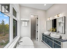 Experience the epitome of luxury country living in this stunning home that combines contemporary elegance with impeccable attention to detail. Flooded with natural light and designed with exquisite craftsmanship, this residence offers the perfect blend of elegance, comfort, and modern sophistication in a serene setting.The bright and airy interior features 10 ceilings, striking 8' solid wood doors, pot lights, and masterfully handcrafted mouldings throughout. The 2,167 SF main level boasts oak floors and an open-concept design with vaulted coffered ceilings and large windows that frame picturesque views of the countryside and expansive deck. The custom kitchen features a generous island and quartz countertops, blending style with functionality.The primary suite offers a striking feature wall, patio doors to the deck, two custom closets, and a luxurious ensuite with a soaking tub and walk-in shower adorned with spectacular tile. The main floor includes two additional bedrooms, an office, a full bathroom, and a powder room. A private hallway leads to a fourth bedroom with an ensuite and direct outdoor access - perfect for guests.The stairway to the lower level is equipped with motion-activated lighting, blending functionality and ambiance. This 2,158 SF space features includes a fifth bedroom, a cold room, and ample storage. Set on nearly 2.5 acres on the outskirts of the charming town of Yarker and surrounded by mature trees for ultimate privacy, this home boasts a massive 734 SF garage with 18' ceilings, with the potential to add a loft space. Enjoy the outdoor amenities, including an inviting fire pit, a separate cabin for entertaining or relaxation, a sauna, and a large storage area.Rarely is a property of this caliber available. Experience the perfect blend of luxury and natural beauty in this exceptional home. Discover a sanctuary where breathtaking views meet unparalleled craftsmanship, creating an inviting space you'll be proud to call home. (id:61594)