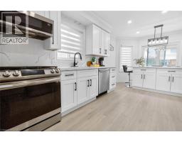 Absolutely Stunning 3-bedroom detached home in a prime southeast Burlington location! This bright and spacious home features an open-concept living and dining room with beautiful flooring throughout, smooth ceilings, a cozy fireplace, and pot lights. The fully renovated eat-in kitchen is a highlight, boasting quartz countertops, a stylish backsplash, a massive centre island that comfortably seats five, ample counter space, and newer cabinets. From the kitchen, you can walk out to your own private backyard oasis complete with a gazebo and an exposed concrete patio - perfect for entertaining. Up the elegant oak stairs with wainscoting, you'll find a spacious primary bedroom with a walk-in closet, crown moulding, and a beautifully renovated 4-piece ensuite bath. Two additional generous bedrooms also feature crown moulding, while the renovated 5-piece main bath offers his-and-her sinks. The finished lower level includes a large recreation room with pot lights and laminate flooring, plus an updated 2-piece bathroom, providing endless possibilities for a home office, gym, or entertaining space. Additional features include front and backyard irrigation systems, outdoor pot lights, and a gorgeous front driveway. With too many upgrades to list, this move-in-ready home is ideal for entertaining and family living in a fantastic neighbourhood. You're close to everything important - shopping, schools, transit, Appleby GO Station, the QEW, and just steps from a beautiful park at the end of the street. Just move in and enjoy! (id:61594)