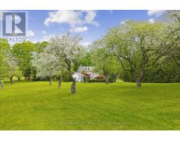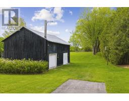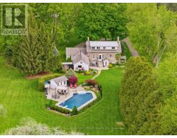 Welcome to Stone Eden-a place where timeless character and intentional living come together.Set on 10.87 rolling acres in the quiet countryside of Ashburn in Whitby, this remarkable property and home is a legacy meant to be lived in and cherished.From the moment you pass through the custom wrought-iron gate, a sense of calm settles in. The winding private drive leads you past two serene ponds, a mature apple orchard, and a heated in-ground pool, each element adding to the estate's rare privacy and natural beauty. A 37' x 28' barn enhances the possibilities-ideal for equestrian use, a hobby farm, creative workspace, or flexible storage.At the centre of the property stands the original hand-crafted stone residence, meticulously restored and updated to honour its heritage while offering modern comfort. Sunlight fills the inviting living and dining rooms, where warm hardwood floors and a gas fireplace set the tone for family gatherings and quiet evenings. The kitchen blends charm with functionality, featuring built-in appliances, a gas cooktop, and heated floors.The main floor also includes a sophisticated office with custom built-ins, perfect for focused work or study. Upstairs, four well-appointed bedrooms provide space and flexibility for families, guests, or multi-generational living. The finished walk-up basement adds yet another dimension, offering a stylish bar, gas fireplace, and a spacious area for relaxing or entertaining. Every detail of Stone Eden reflects pride of ownership-from the cedar roof (2020) and MagicWindows to the curated gardens and thoughtfully maintained trails. This is a property where history is preserved, nature is celebrated, and future memories are waiting to be made.Whether you're seeking a peaceful retreat, a multi-generational haven, or a place to fully embrace country living without compromise, Stone Eden invites you in. A truly rare and extraordinary opportunity. (id:61594)
