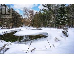 PRIVATE 1.38-ACRE CITY RETREAT WITH TWO PONDS, TOWERING TREES, & A CUSTOM-BUILT BUNGALOW WITH A WALKOUT BASEMENT! Tucked away on a spectacular 1.38-acre property surrounded by towering trees, two ponds, and a gentle stream, this rare city retreat feels worlds away yet is only minutes from everything you need. Enjoy quick access to parks, golf, the new library, Park Place Shopping Centre, Costco, Walmart, dining, entertainment, Highway 400, and the Barrie South GO Station. This custom-built bungalow features an attached double-car garage plus driveway parking for eight, a bright kitchen with white shaker cabinets, complementing counters, stainless steel appliances, and an undermount sink with views of the treed surroundings. The living and dining areas are filled with natural light and open to a sunroom, which leads to a back deck with glass railings overlooking the ponds. The finished walkout basement extends the living space with in-law potential, a cozy gas fireplace in the rec room, a fourth bedroom, a two-piece bath, and a spacious laundry room with excellent storage. Updated throughout with fresh paint, this carpet-free home features hardwood flooring along with an instantaneous hot water heater, a natural gas furnace, and a UV system for reliable and efficient home comfort. This #HomeToStay is a rare find offering privacy and natural beauty, all without leaving the city. (id:61594)