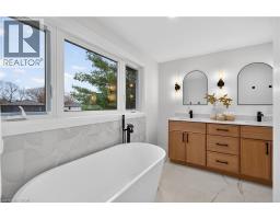 Welcome to 5375 Riverside Drive, a masterfully renovated 4-level side split that sets a new standard for style and craftsmanship. This home has undergone a comprehensive, fully permitted top-to-bottom transformation. The main level offers a sophisticated open-concept floor plan featuring a custom chef’s kitchen with premium finishes, flowing seamlessly into the living and dining areas accented by elegant white oak flooring. The upper level serves as a private sanctuary, headlined by a primary suite with a spa-inspired 6-piece ensuite and a custom-organized walk-in closet. The ground floor provides excellent functionality with a spacious foyer, garage access, and a versatile office space that opens to an expansive rear yard via sliding glass doors. Downstairs, a light-filled recreation room—complete with a wet bar and feature fireplace—offers the perfect setting for hosting. Ideally situated on the Oakville border, this property is just minutes from the lake, Bronte Village, and the Appleby GO station. (id:61594)