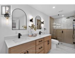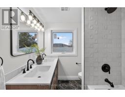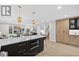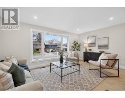 Welcome to 5375 Riverside Drive, a masterfully renovated 4-level side split that sets a new standard for style and craftsmanship. This home has undergone a comprehensive, fully permitted top-to-bottom transformation. The main level offers a sophisticated open-concept floor plan featuring a custom chef's kitchen with premium finishes, flowing seamlessly into the living and dining areas accented by elegant white oak flooring. The upper level serves as a private sanctuary, headlined by a primary suite with a spa-inspired 6-piece ensuite and a custom-organized walk-in closet. The ground floor provides excellent functionality with a spacious foyer, garage access, and a versatile office space that opens to an expansive rear yard via sliding glass doors. Downstairs, a light-filled recreation room-complete with a wet bar and feature fireplace-offers the perfect setting for hosting. Ideally situated on the Oakville border, this property is just minutes from the lake, Bronte Village, and the Appleby GO station. (id:61594)