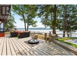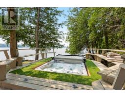 Heavenly two acre peninsula on Opinicon Lake that's intricate part of Rideau Canal system for great swimming, boating & fishing. The peninsula feels like a sanctuary with the lake on three sides and Mother Nature in-between. Panoramic 360 views include sunrises, sunsets and, magical calls of the loons. In the midst of this beauty, beloved cottage all tastefully and thoughtful renovated into welcoming summer home. You also have boathouse and elaborate hi-end docking system with lights. The peninsula has 1,381' waterfront; one side crystal clear for swimming. Other side natural flora where birds and frogs thrive. On huge rock at the shore, amazing pergola-gazebo with landscaped waterfall and hammock structure - ideal for watching lake flow by during the day and stars sparkle in the evening. With pleasing style, the summer home features contemporary layout and modern comforts. Adding character are vaulted log & pine ceilings and magnificent century granite floor-to-ceiling fireplace with log mantle. Dining room bay window has bench seat offering mesmerizing lake views. Upscale quartz kitchen of display cabinets and quality 2020 Samsung appliances. Well-designed sunroom-porch overlooks the great outdoors. Main floor, spacious primary bedroom with wood accents and windows on three walls for never-ending views. Three-piece bathroom glass & ceramic shower. Second floor familyroom basks in sunlight from skylights. This room also has vaulted pine ceiling and the fireplace's showcase upper stone wall. Second floor bedroom also has vaulted ceiling and skylights; 3-pc bathroom spa-body shower. Expansive deck provides resort-like luxury, 2024 Jacuzzi hot tub & 2024 cold plunge. All furnishings included. Propane furnace & central air. For guests, new 2024 bunkie tucked up on hill with wrap-about deck, vaulted ceiling, laminate floor, electric fireplace & AC unit. Hi-speed. Cell service. Private road maintenance fee $100/yr. 10 mins Elgin for groceries. 45 mins Kingston or Perth. (id:61594)
