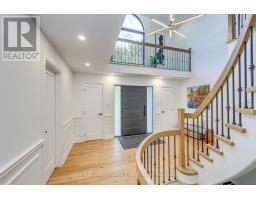 Extraordinary Fully Renovated Home in Prestigious Oakhill, Ancaster. Set on one of Ancasters most coveted streets in the distinguished Oakhill neighbourhood, this exceptional four-bedroom, three-bathroom custom-built residence has undergone a complete and meticulous transformation, reimagined from top to bottom with no expense spared. Every element has been renewed, including all windows and doors, flooring, bathrooms, and a designer kitchen that blends luxury with functionality. Offering over 4,000 square feet above grade, the home showcases an elegant open layout with beautifully appointed living and dining spaces, a main floor office, and a chef-inspired kitchen with premium finishes and high-end appliances. Upstairs, the spacious bedrooms and spa-like bathrooms reflect thoughtful design and craftsmanship in every detail. Outside, the propertys award-winning landscaping, a seven-time Trillium Award recipient, frames a private, landscaped backyard ideal for both relaxation and entertaining. Located steps from a serene park and within walking distance to the Hermitage and Bruce Trails, this home embodies both prestige and tranquility in equal measure. An extraordinary opportunity to own one of Ancasters most remarkable and beautifully reimagined homes. (id:61594)