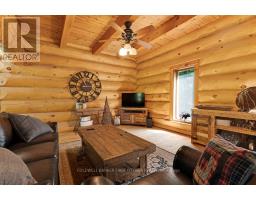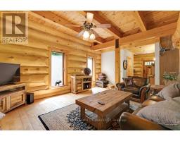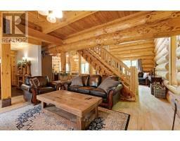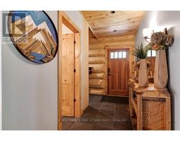 Bring your skis and snowboards! Steps from Pakenham ski hills is custom 2009 log home on large half acres with magnificent sunsets over the hills. The impressive 3+1 bed, 2.5 bath home features grand wrap-about verandah. Light-filled open-concept home built with 1.5' diameter logs from British Columbia. Front foyer has slate-like ceramic floor and nook with built-in shelves for coats, hats & boots. High ceilings and floors of hardwood, softwood and ceramic tile. Livingroom 10' ceiling and tall windows for natural light. Dining room tall windows overlook great outdoors. Kitchen has peninsula with breakfast bar that sits 7-8 comfortably; birch cabinetry includes pantry and drawer divided to fit cooking pots & baking tins. Family room soaring cathedral ceiling and superior, top-of-line, Masonry woodstove from Vermont. Double doors open to expansive verandah that welcomes you to sit down, and relax. Main floor powder room has ceramic tile floor and endearing wooden barrel vanity with hammered copper sink. Solid wood staircase to primary bedroom with 12' ceiling and double closet. Two more bedrooms and upgraded bathroom of porcelain plank floor, double quartz vanity, deep soaker tub and walk-in ceramic shower with rain head. Lower level rec room, gym, fourth bedroom and 3-pc bathroom with glass shower and another wooden barrel vanity including hammered copper sink. The well-built home has energy-efficient ICF foundation & Thermolec boiler to heat water for radiant floor heating through out the lower level. Second floor heated with radiant wall heaters. Outside, you have chicken coop, garden shed and woodshed. Bell Fibre available & cell service. Located in family friendly neighbourhood of Mount Pakenham, On paved township road with garbage and recycling pickup plus school bus stop. Five mins down the road is Pakenham golf course; another minute further, is delightful artisan Village of Pakenham on shores Mississippi River for swimming, boating & fishing. 25 mins Kanata. (id:61594)