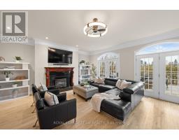 Located on a quiet cul-de-sac in the desirable Manotick Estates neighbourhood, this exceptional residence combines a prime location with an inviting lifestyle. Inside, the generously proportioned layout is perfect for family living and entertaining. A striking two-storey foyer welcomes you, featuring a staircase with wrought iron railings. The main floor showcases French doors, hardwood flooring, and crown mouldings, with an open-concept kitchen and family room that includes a natural gas fireplace and views of the backyard. The kitchen is equipped with granite countertops, stainless steel appliances, and a centre island with a raised breakfast bar. Upstairs, the primary bedroom suite includes a walk-in closet and an ensuite with a separate shower, a relaxing bathtub, and a dual sink vanity. Three additional bedrooms share a full bathroom, while the bonus room, featuring direct stair access to the garage, offers excellent flexibility for a home office or additional living space. The partially finished lower level provides additional living space, complete with a recreation room, office, bonus room, and a bathroom. The backyard is well suited for gatherings, featuring a deck, hot tub, above ground pool, and a mature cedar hedge for privacy. A triple attached garage completes this offering. Ideally situated, this home is just moments from the unique restaurants, boutiques, and street-front cafés of the charming village of Manotick. (id:61594)