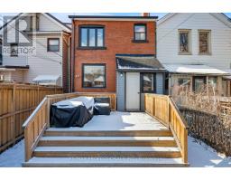 Discover this thoughtfully designed, turnkey home in the coveted Bloor West community. Plenty of natural light, the open-concept layout is perfectly suited for both family gatherings and entertaining guests. The designer eat-in kitchen is a features elegant quartz countertops, high-end appliances, and a generous pantry for your storage needs. Relax in the cozy family room, complete with a striking feature wall. Enjoy the convenience of a rare main floor powder room.Venture upstairs to find three spacious bedrooms, including a luxurious primary suite with double closets. Spa-like bathroom equipped with a large soaking tub, perfect for unwinding after a long day. The fully finished, open concept basement offers good ceiling height and additional living space, complete with laundry and stylish three-piece bathroom. Step outside to a landscaped and fenced backyard featuring a newer deck, perfect for summer evenings and entertaining. Generous parking for two cars. Located in highly desirable school districts. Enjoy all the neighbourhood amenities- including quick walk to TTC & family friendly parks. (id:61594)