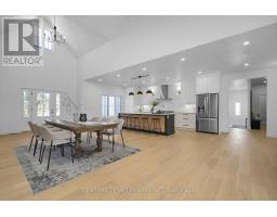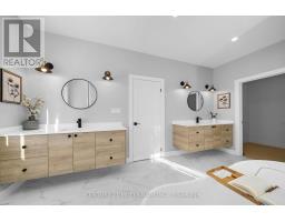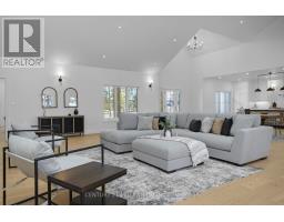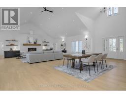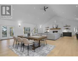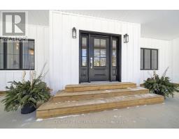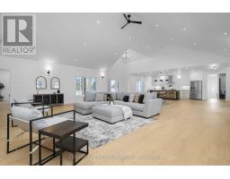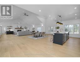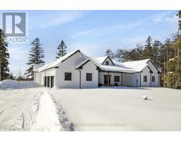 When Modern Farm House is touched with elegance and sophistication you are presented with 5450 Fifth Line. This nearly 3000 sq ft custom bungalow is crafted to ensure the exterior meets the interior. Relaxed country warmth, with clean lines, soaring ceilings and thoughtful finishes throughout. You'll be captivated by the 1300 sq foot great room with 21' cathedral ceiling plus living, dining and kitchen all blended in harmony. The floor to ceiling fireplace focal point, is wrapped with built-ins and a hemlock barn beam mantle. The white oak engineered hardwood in soft neutral tones, flows throughout this masterpiece. The kitchen features a 11' island with seating for 5 and an under counter farm house sink showing off the quartz countertop. High end 6 burner gas 4' stove/oven combo with thoughtfully placed pull out pantry drawers and a functional pot filler. Just off the entry from the 3-car garage is a generous mudroom, laundry and powder room to keep daily life organized. The primary suite is tucked away, offering a quiet retreat with views of the trees and a walkout to the 65' wrap around deck. Get ready for the ensuite with 2 partner vanities, freestanding soaker tub and double walkway into the natural light shower. Then meander into the huge walk-in closet all ready for your inspiration. Additional bedrooms are thoughtfully separated with their own Jack and Jill bathroom, and the 4th with its own ensuite, giving it so many uses. The basement with its soaring 9' ceilings and large windows is a canvas ready for your creativity. On the outside you will celebrate a 2-acre treed lot, where you are able to breathe, create gardens or that backyard oasis, complete with pool and outdoor kitchen, surrounded by the covered deck. It is close to town, but you are able to watch the sun rise with your morning coffee and the sun set with your glass of shiraz. This bungalow offers 'everything you need' today, while remaining practical and timeless for years to come. (id:61594)
